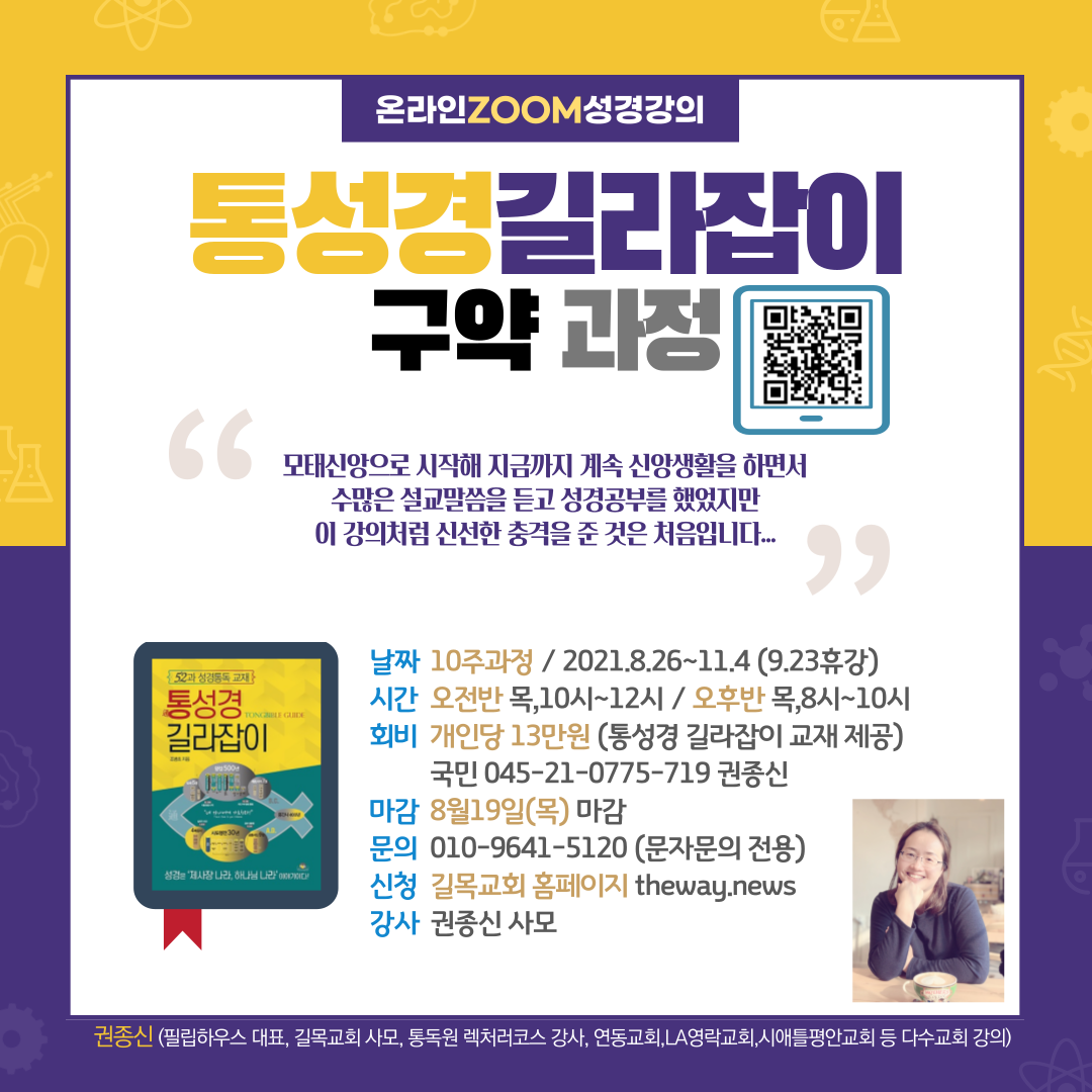 세계적인 성경통독 전문가 조병호 박사의 [통성경 길라잡이] 컨텐츠를 권종신 사모를 통해 쉽고 재미있게 배울 수 있습니다.