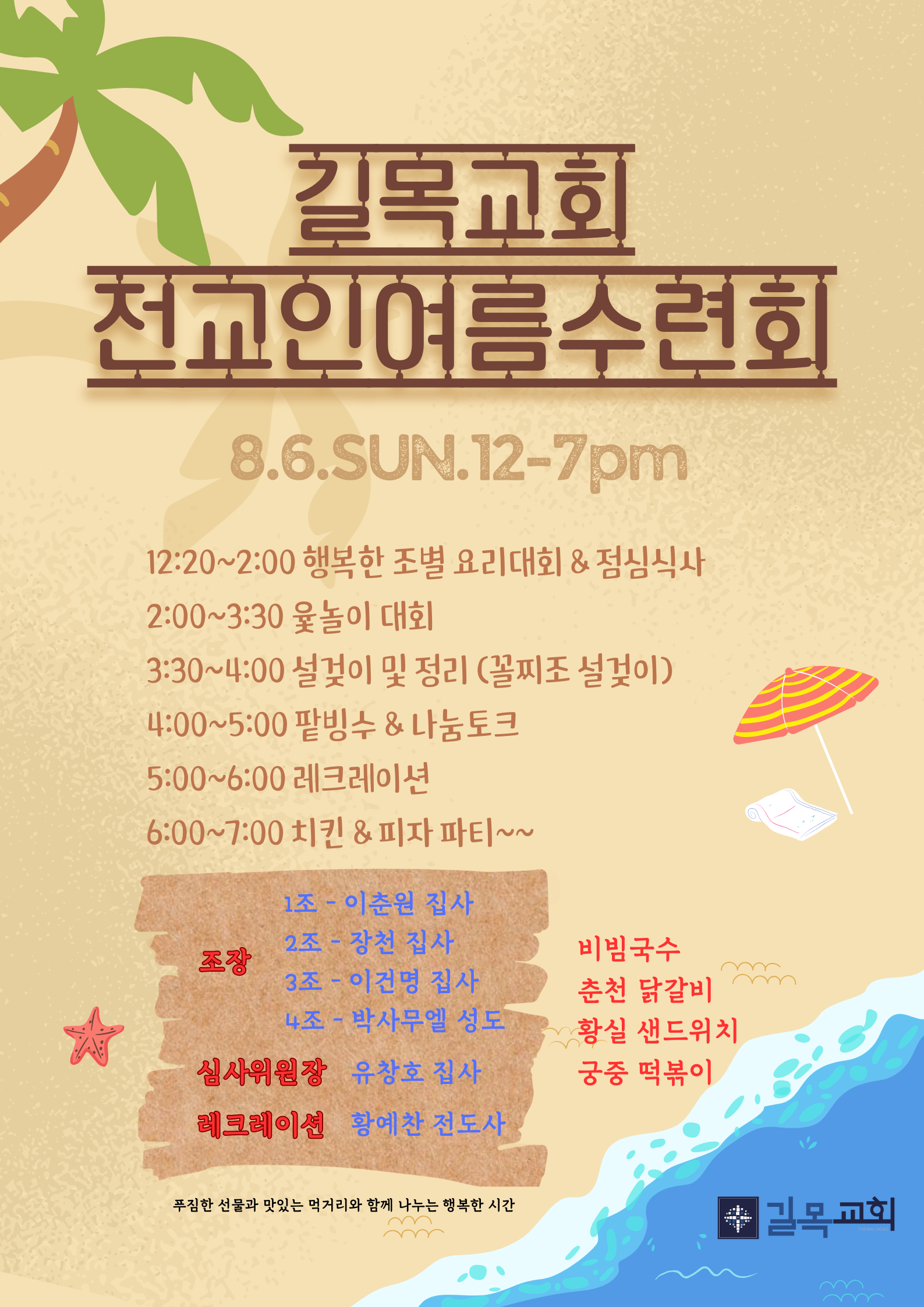 이번주 주일 오후 길목교회 2023 전교인 여름수련회를 실시합니다 ^^
